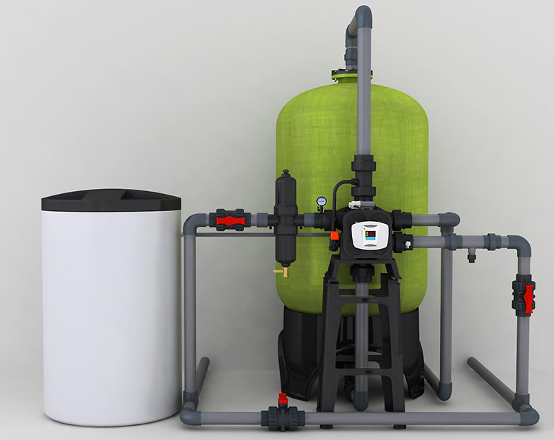 全自動(dòng)軟化系統(tǒng)主要由多路閥、控制器、樹(shù)脂罐、鹽箱組成